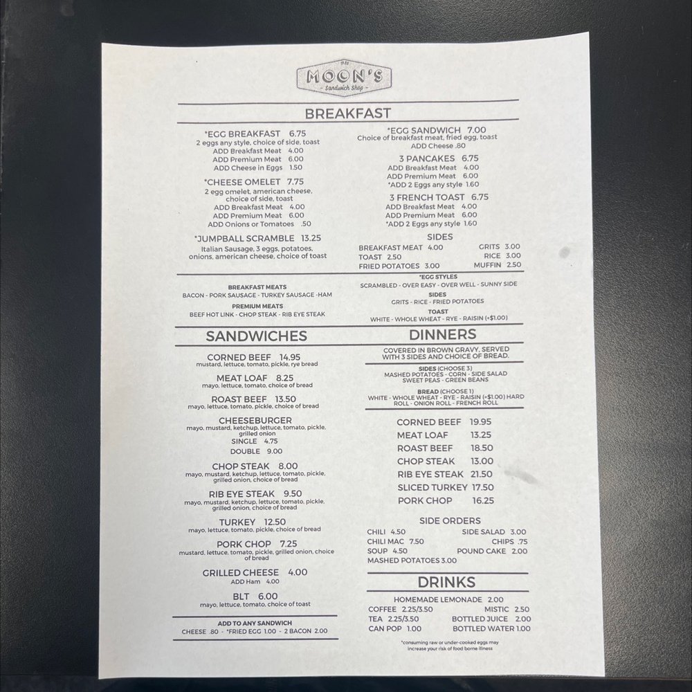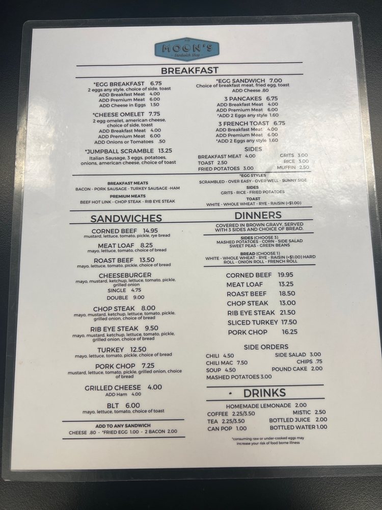 Moon’s also caters to every palate, with a selection of breakfast sides like grits and bacon, along with comforting additions like chili and mashed potatoes. Customers rave about the warmth and family-like atmosphere, making it the ideal spot for anyone looking to enjoy a hearty meal. Whether you’re a local or visiting, Moon's is a must-stop culinary experience!
